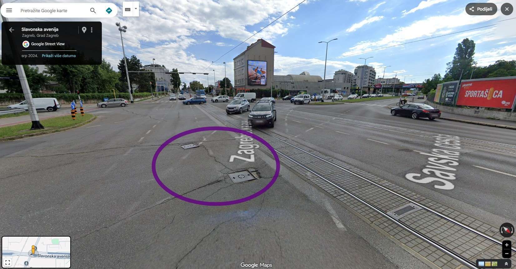 Križanje Savske ceste i Slavonske Avenije, ulegnuti šahtovi