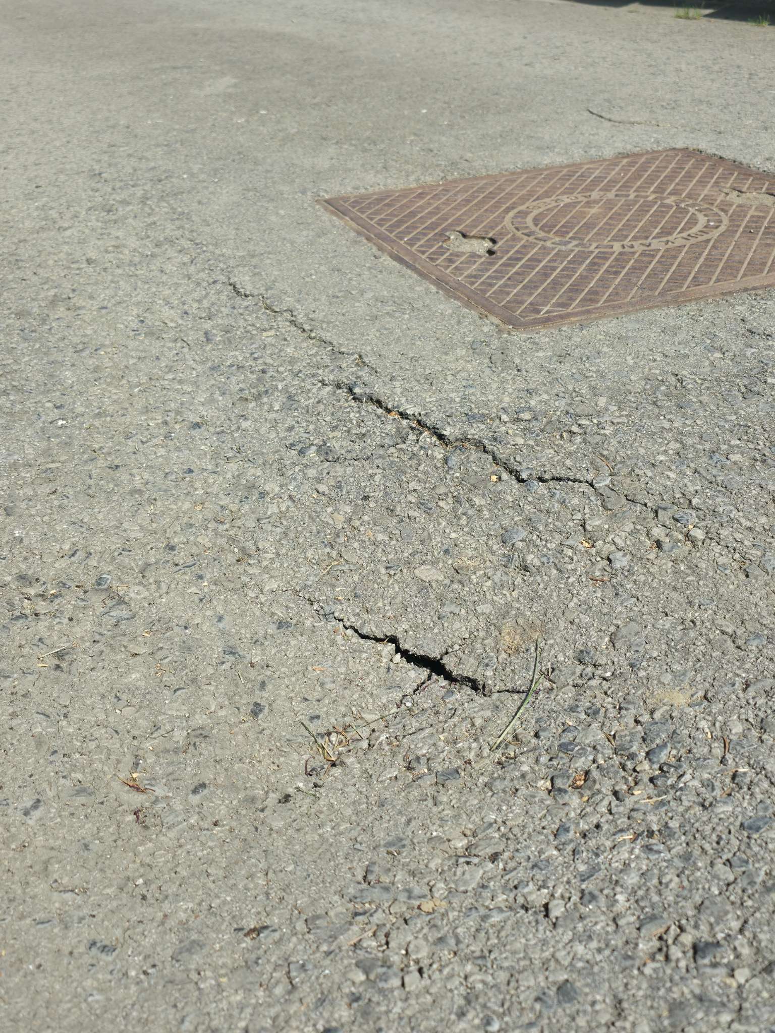 Između dvije sahte je pukao asfalt te je udubljenje na cesti a vrlo brzo ce se otvoriti i rupa na cesti.